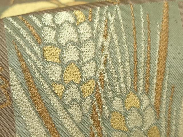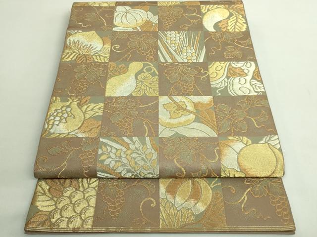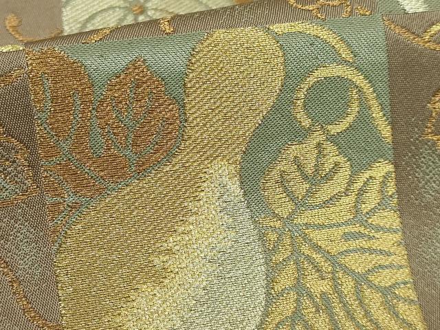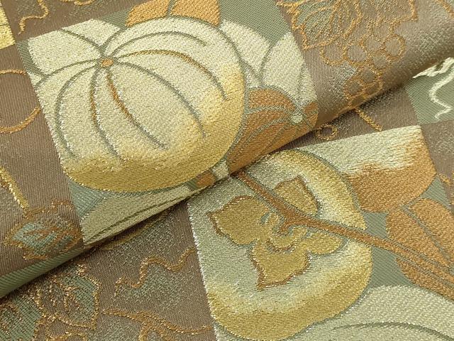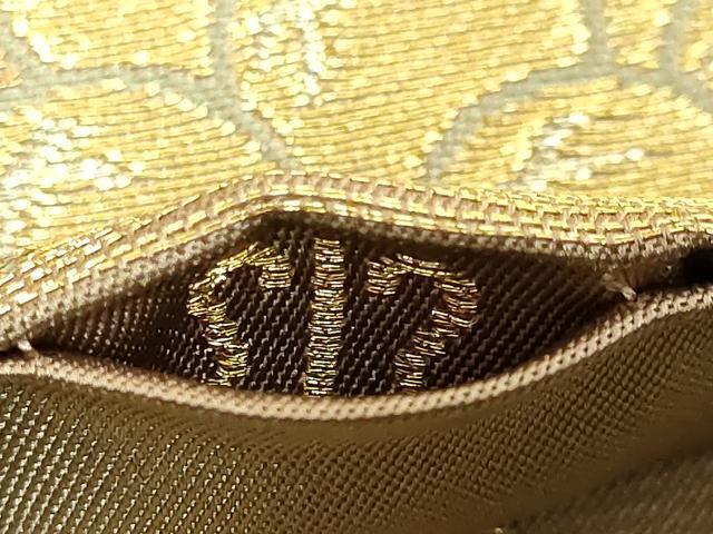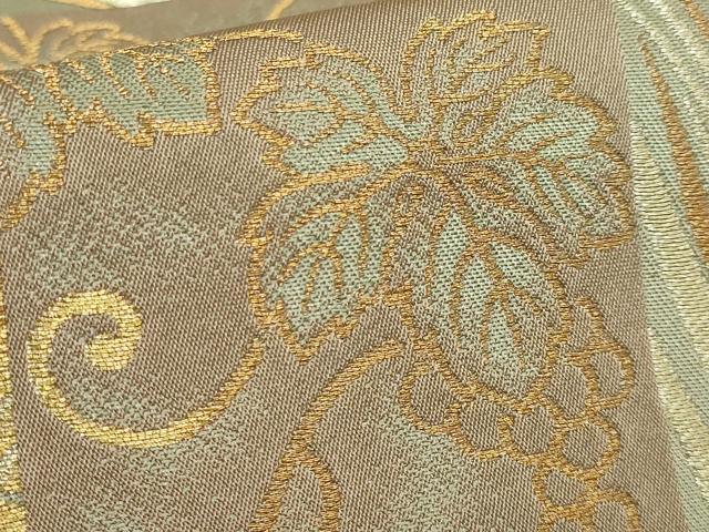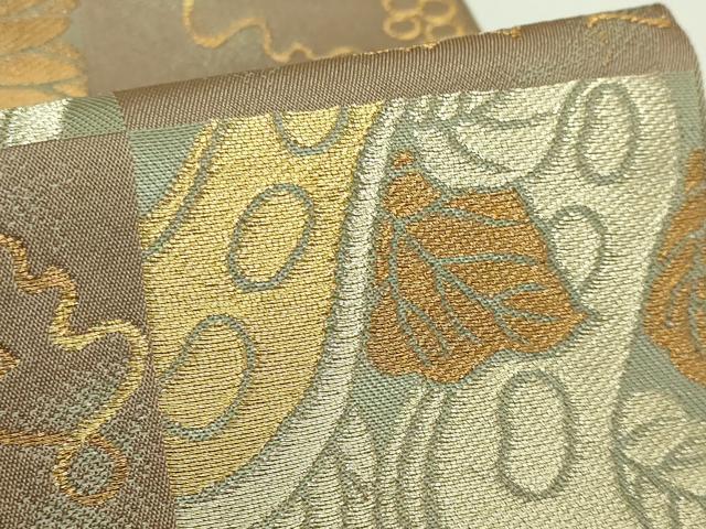 Heiwaya Kimono: Exquisite Nishijin Kawashima Orimono Six-Pass Pattern Authentic Fukuro Obi with Checkered Ivy Leaves, Natural Material, Gold Thread, DZAB1797kh6