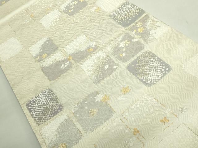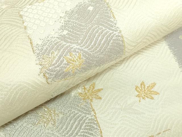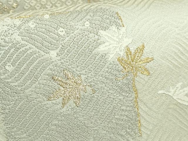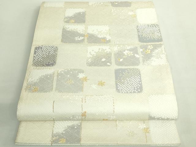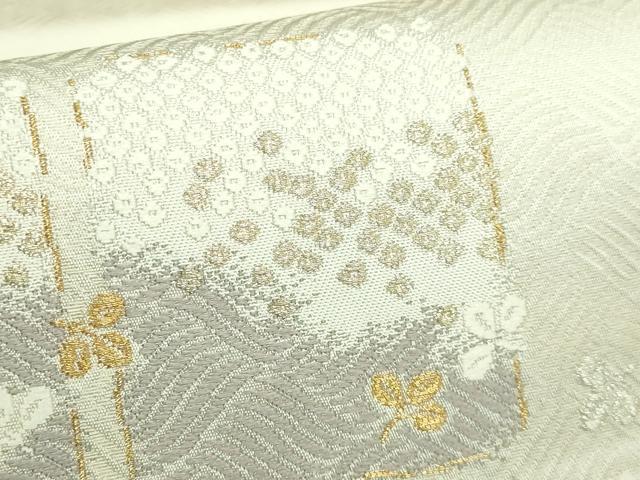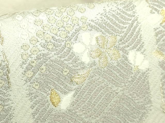 Heiwaya Kimono: Exquisite Nishijin Kimono by Kano Yuki. Six-pass pattern obi, Karaori weave, with a floral design on colored paper and gold and silver thread. DZAB2100kh6