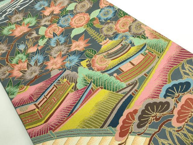 Heiwaya Kimono: Exquisite Nishijin Shiraayaen Oba Six-Pass Pattern Obi with Famous Landscape Design, Excellent Item, DZAB2360kh6