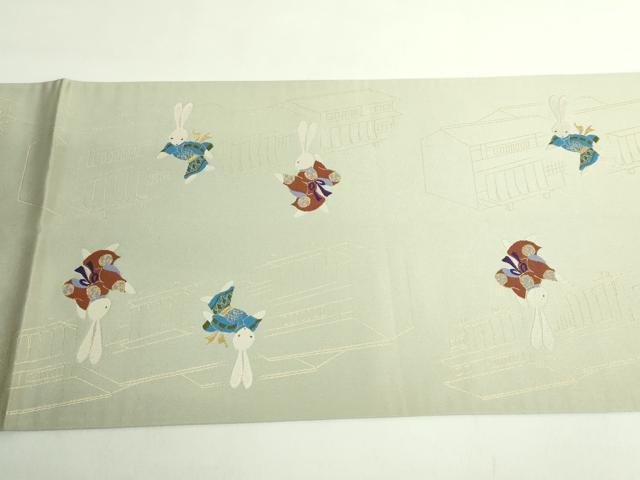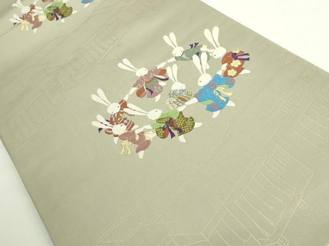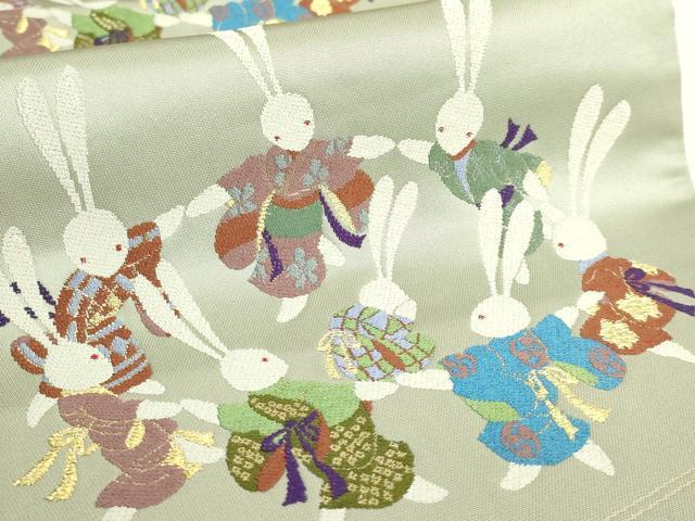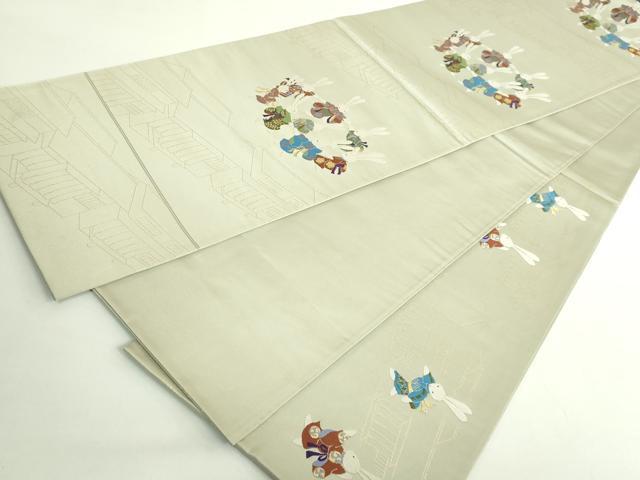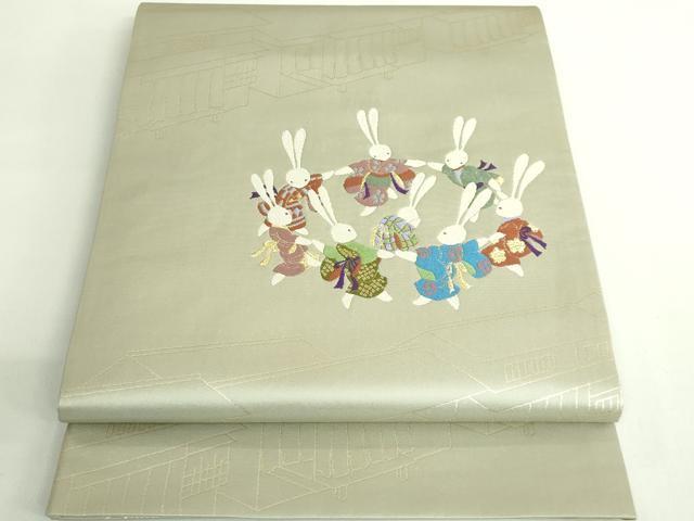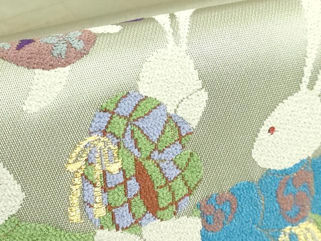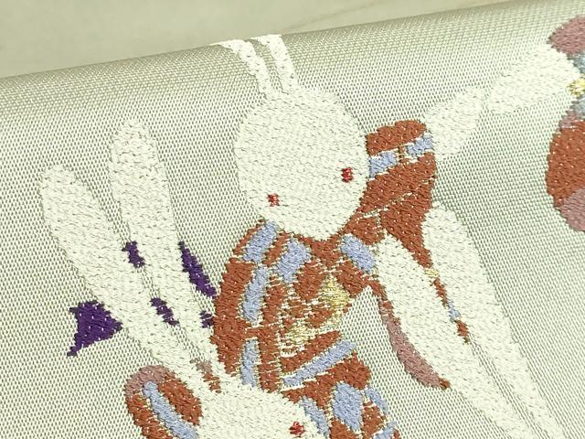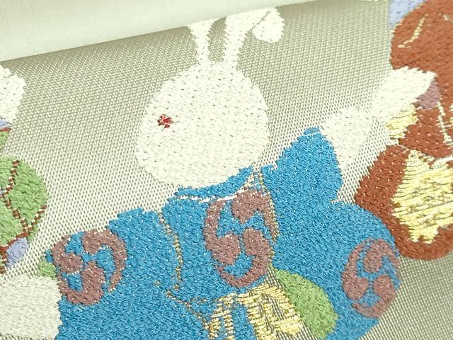 Heiwaya Kimono: Exquisite Oda Akira Taiko Drum Pattern Obi, Kagome Kagome Pattern, Rabbit Design, Gold Thread, Sand-Colored Ground, Excellent Condition, DZAB2362kh6