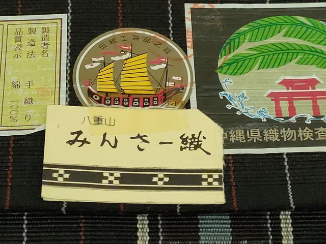 八重山地方で手織りされるミンサーの帯はその素朴な風合いと異国風の雰囲気がございます。
