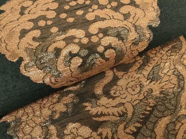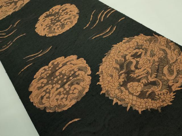 Heiwaya Kimono: Exquisite Six-Piece Pattern Obi, Three-Season Obi, Dragon and Wave Design, Black Background with Gold Thread, Excellent Condition, DZAB2093kh6