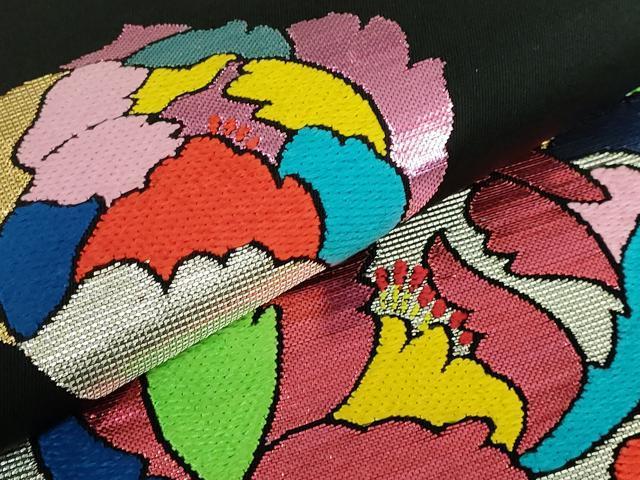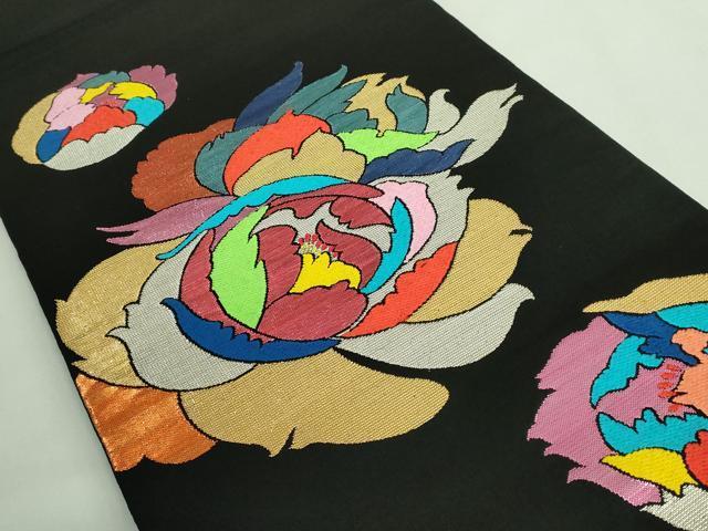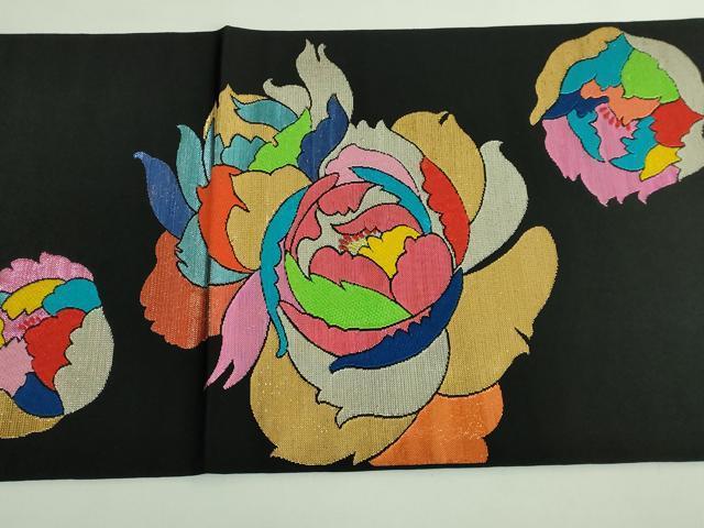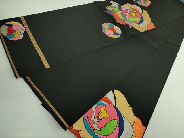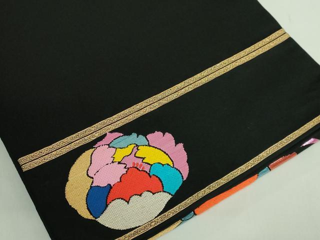 Heiwaya Kimono: Exquisite Tatsumura Art Textiles Taiko Drum Pattern Authentic Fukuro Obi (Sash), Fuki Style, Black with Gold and Silver Threads, Excellent Condition, DZAB2667kh6