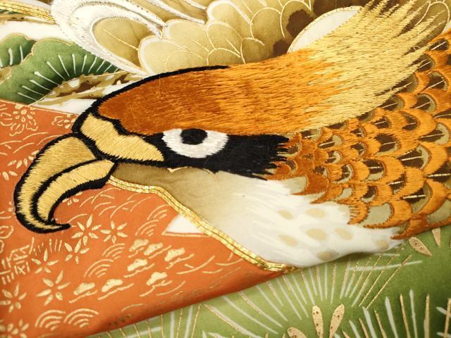 産着【表地:正絹・胴裏:化繊】の状態は接写画像のように上前・紐に薄い汚れがございますが