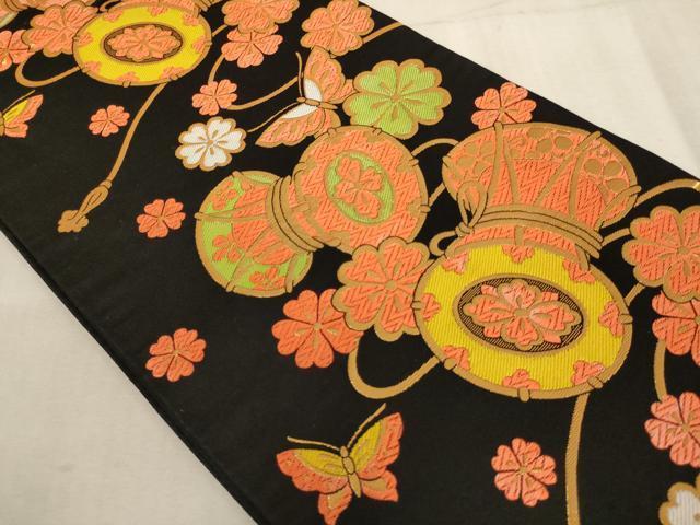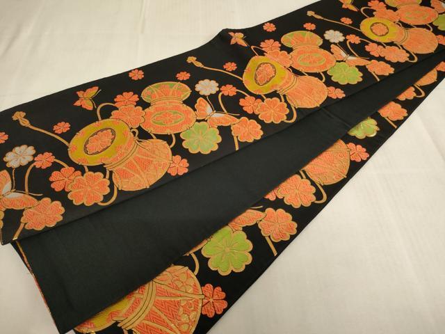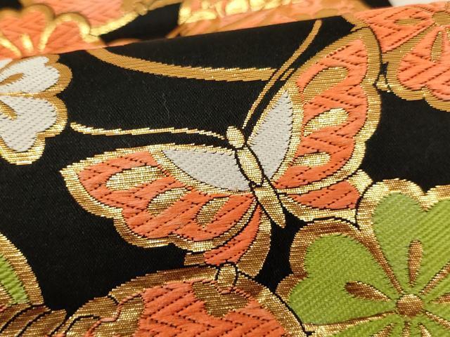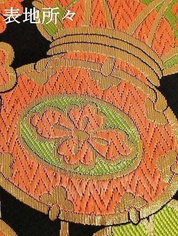 袋帯【化繊・芯なし】の状態は接写画像のように、表地所々に色褪せがございます。