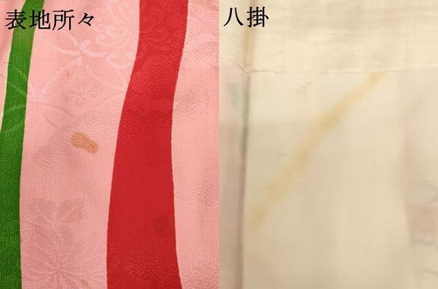 着物【正絹】の状態は接写画像のように表地・八掛に汚れがございますが