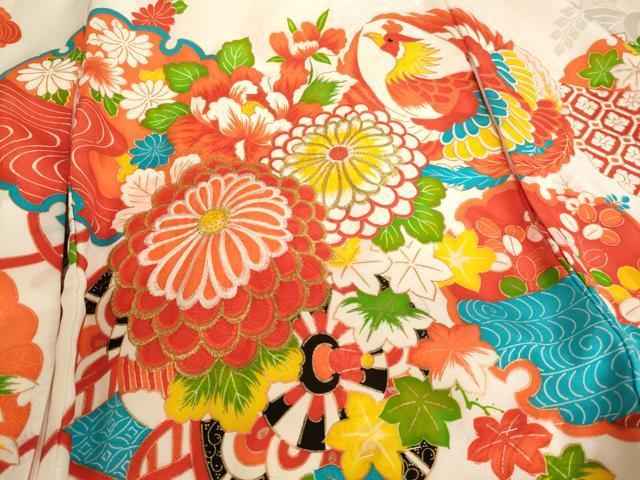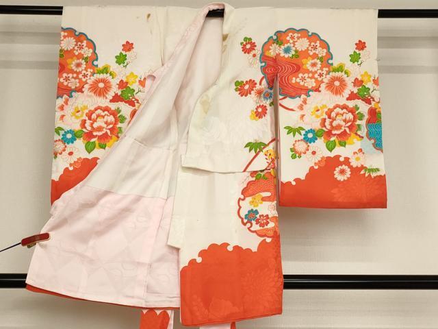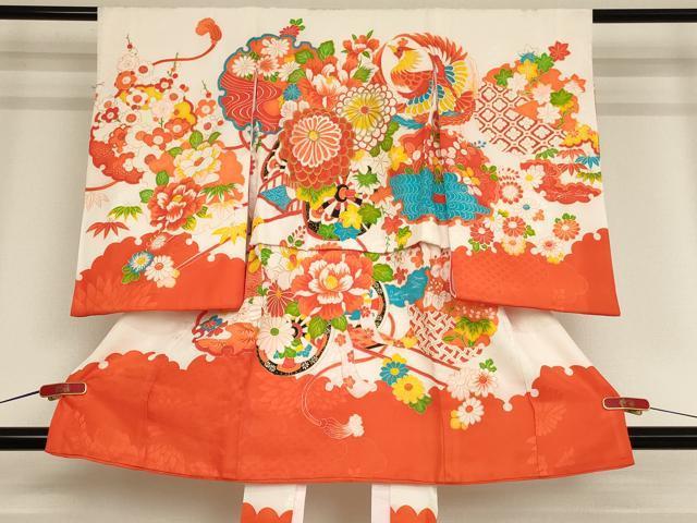 Heiwaya Kimono for Shichi-Go-San, 3-year-old girl, Celebration Kimono, Noshime (Sealed), Embroidered Phoenix and Floating Car Design, Gold Thread and Gold Accents, Excellent Quality, AAAY2558ja