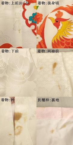 着物【正絹】の状態は接写画像のように上前おくみ・後身頃・下前・両袖前・衿に汚れがございますが
