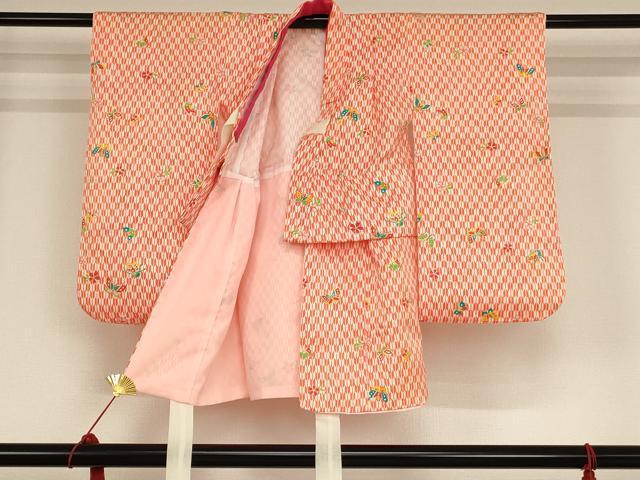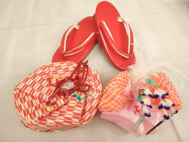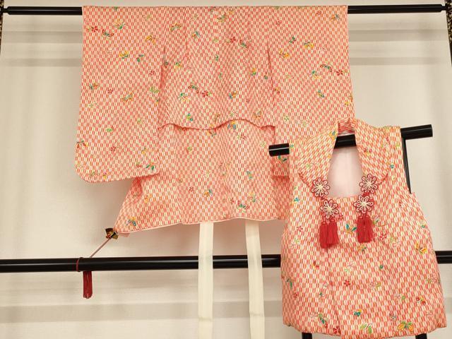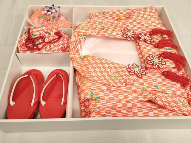 Heiwaya Kimono for Shichi-Go-San, 3-Year-Old Girl, Celebration Kimono, Three-Piece Set, Includes Hifu, Sandals, Drawstring Bag, and Hair Accessory, Arrow Feather, Flower, and Butterfly Design, Box Included, Excellent Condition, AAAT9998ja