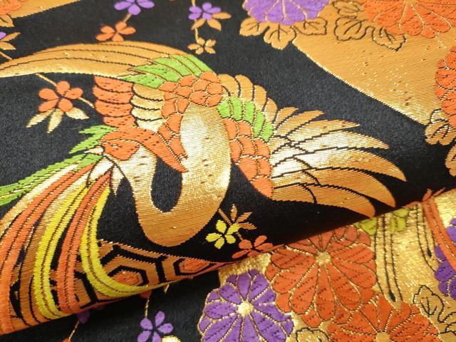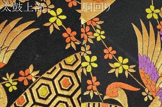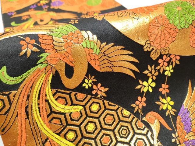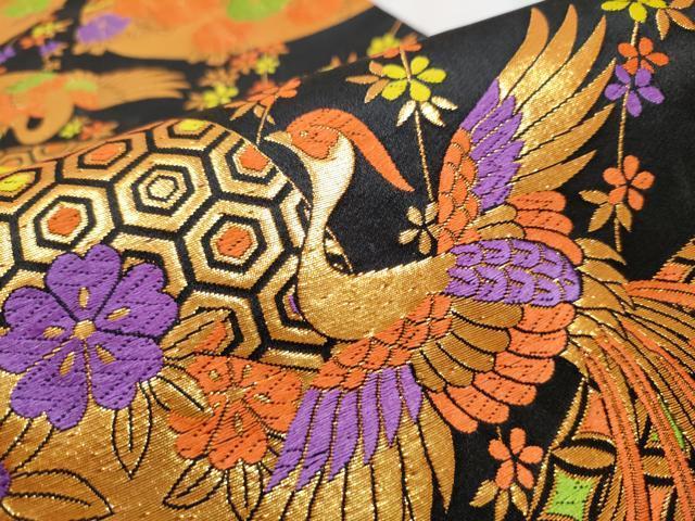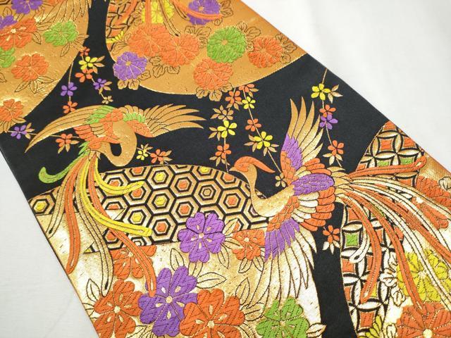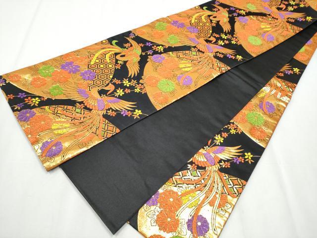 Heiwaya Kimono for Shichi-Go-San (7-5-3) - Girl's Full-Length Pattern Obi (Fukuro Obi) - Karaori Weave, Phoenix and Flower Design, Black Background with Gold Thread, Excellent Item, CABA4931hy