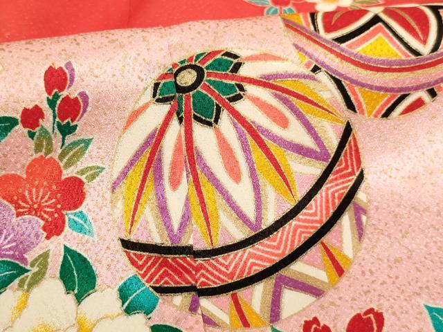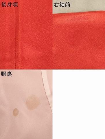着物【化繊】の状態は接写画像のように後身頃・右袖前に薄い汚れ、胴裏に汚れがございますが