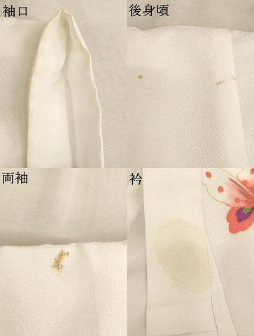 着物【化繊】の状態は接写画像のように袖口・後身頃・両袖・衿に汚れがございますが