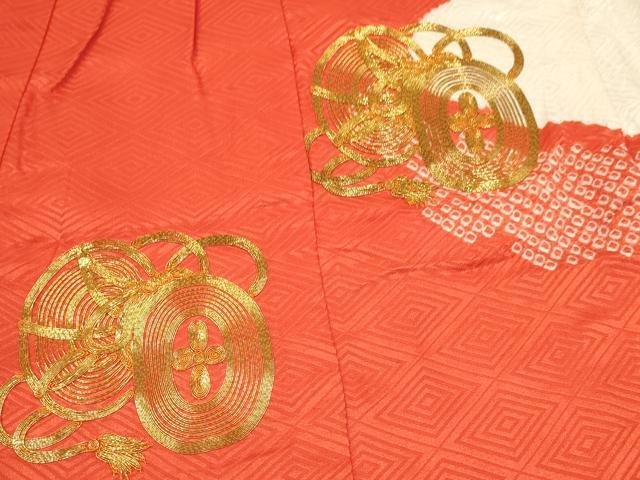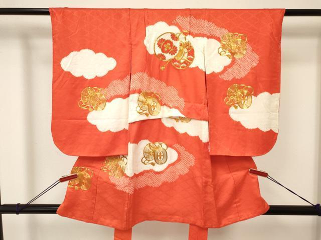 Heiwaya Kimono for Shichi-Go-San, Girl's 3-Year-Old, Celebration Kimono, Three-Piece Set, Koma Embroidery, Shibori, Cloud Pattern, Drum and Flower Design, Excellent Item, DAAY3334ma