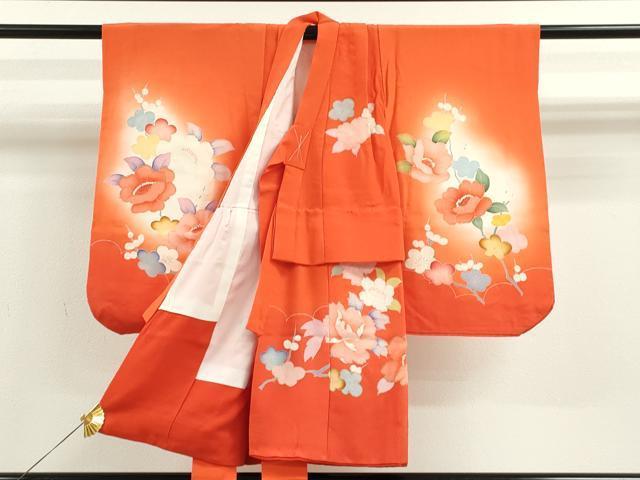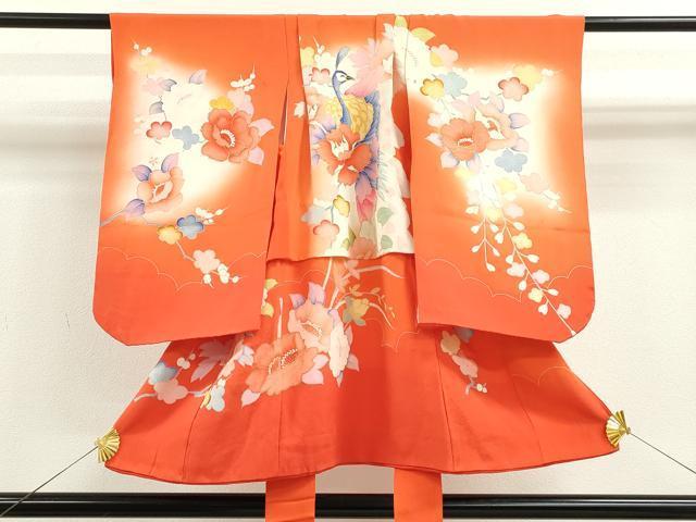 Heiwaya Kimono for Shichi-Go-San, Girl's 3-Year-Old, Celebration Kimono, Three-Piece Set, Peacock, Branch, and Flower Design, Gradient Dye, Gold Accents, Excellent Quality, CAAT6385ze