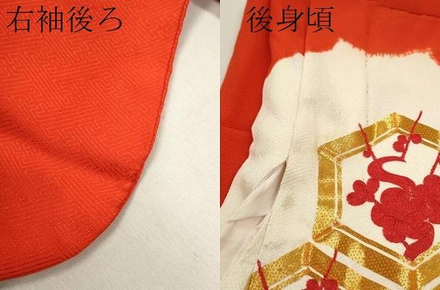 着物【表地:正絹・胴裏:化繊】の状態は接写画像のように右袖後ろ・後身頃に薄い汚れがございますが