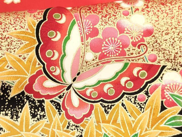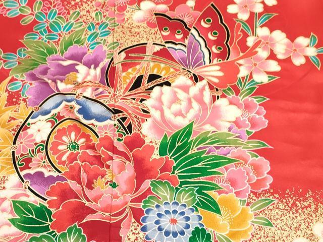 Heiwaya Kimono for Shichi-Go-San, Girl's 7th Birthday, Celebration Kimono, Four-Piece Set, Drum, Flower, and Butterfly Design, Gradient Dye, Gold Accents, Excellent Item, DAAY3326ma