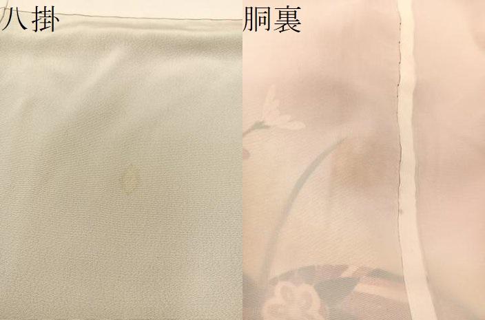 着物【正絹】の状態は接写画像のように八掛・胴裏に薄い汚れがございますが