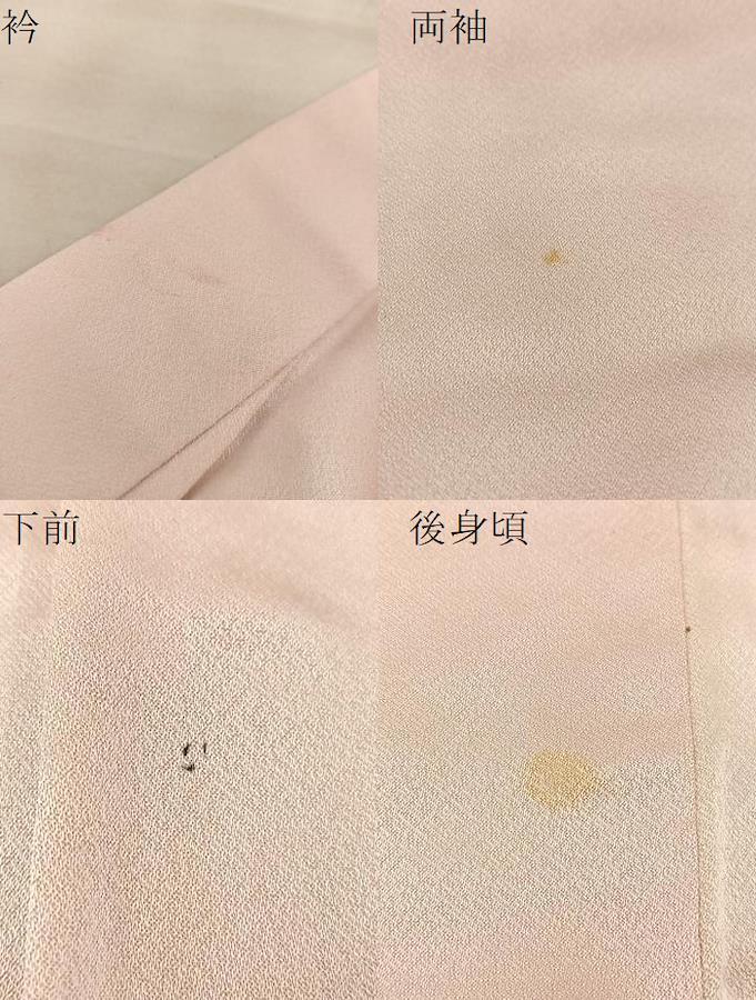 着物【正絹】の状態は接写画像のように衿・両袖・下前・後身頃・胴裏に薄い汚れがございますが