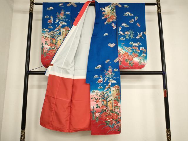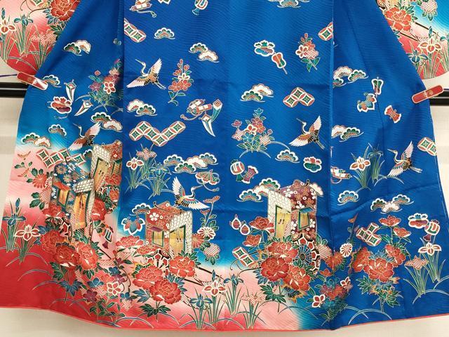 Heiwaya Kimono for Shichi-Go-San, Girl's 7th Year, Celebration Kimono, Four-Piece Set, Flying Crane and Imperial Carriage Design, Flower Pattern, Gradient Dye, Gold Accents, Pure Silk, Excellent Condition, AABE2227ja