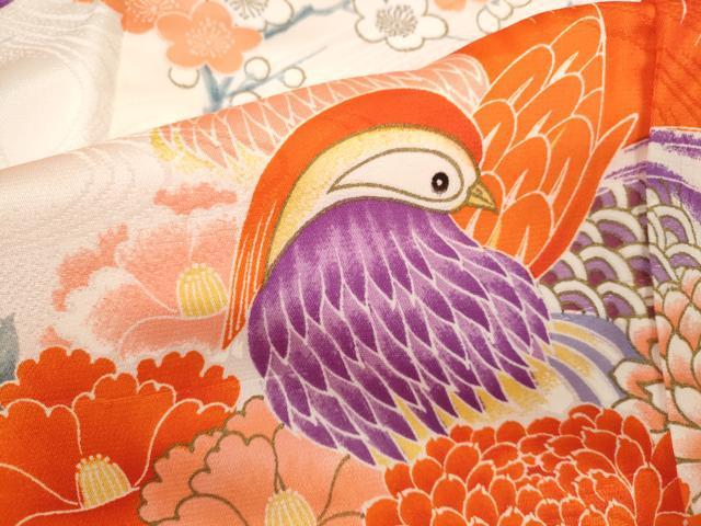 Heiwaya Kimono for Shichi-Go-San, Girl's 7th Year, Celebration Kimono, Four-Piece Set, Koma Embroidery, Mandarin Duck and Flower Design, Gold Accents, Washable, CAAZ6997ze