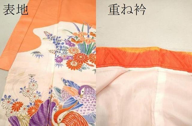 着物【化繊】の状態は接写画像のように表地所々・重ね衿に薄い汚れがございます。