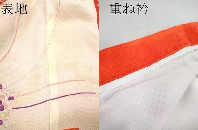 着物【化繊】の状態は接写画像のように表地所々・重ね衿に薄い汚れがございます。