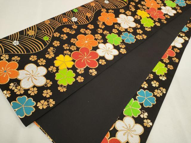 全通柄袋帯【正絹・芯なし】の状態は接写画像のように裏地に薄い汚れがございますが