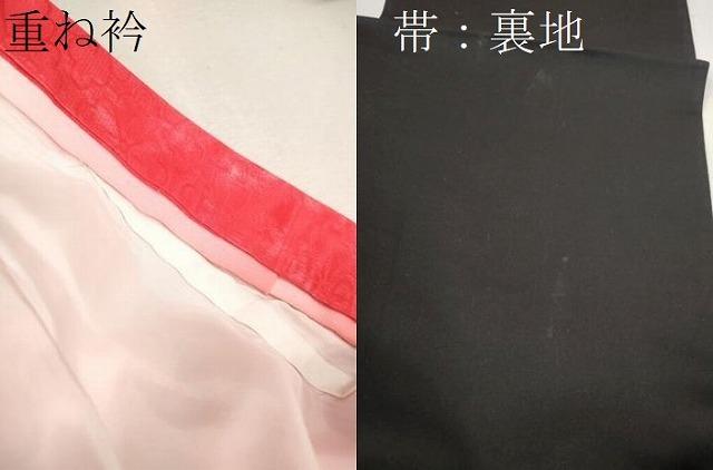 着物【表地:ポリエステル・胴裏:アセテート・八掛:ポリエステル】の状態は接写画像のように重ね衿に薄い汚れがございますが
