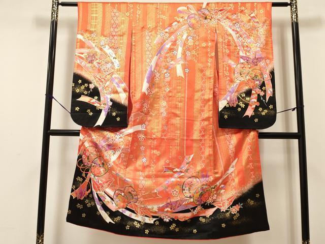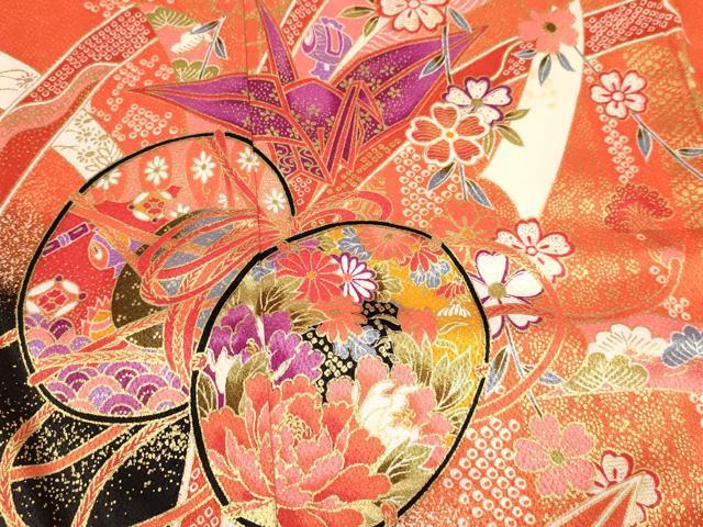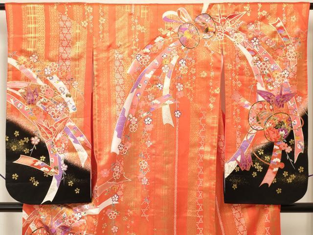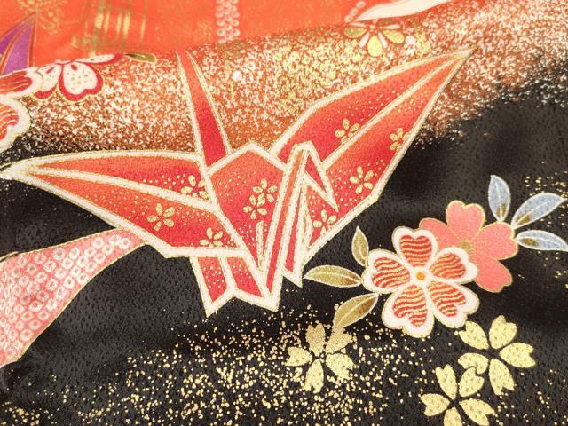 Heiwaya Kimono for Shichi-Go-San, Girl's 7th Year, Celebration Kimono, Yotsumi, Origami Crane, Drum and Flower Design, Gradation Dye, Gold Accents, DAAW2833ma
