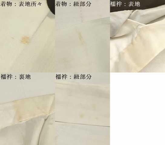 表地:表地所々・紐部分、襦袢:表地所々・裏地・紐部分に薄い汚れがございます。