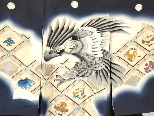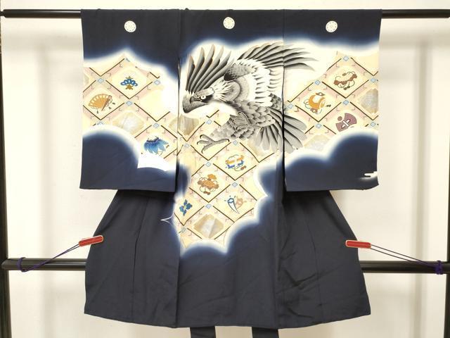 Heiwaya Kimono for Shrine Visits, Boys, Celebration Kimono, Baby Kimono, First Kimono, Noshime Kimono, Hawk and Eagle Design, Treasure-Filled Flower Diamond Pattern, Gradient Dye, Gold and Silver Accents, Excellent Item, DAAR6278ma