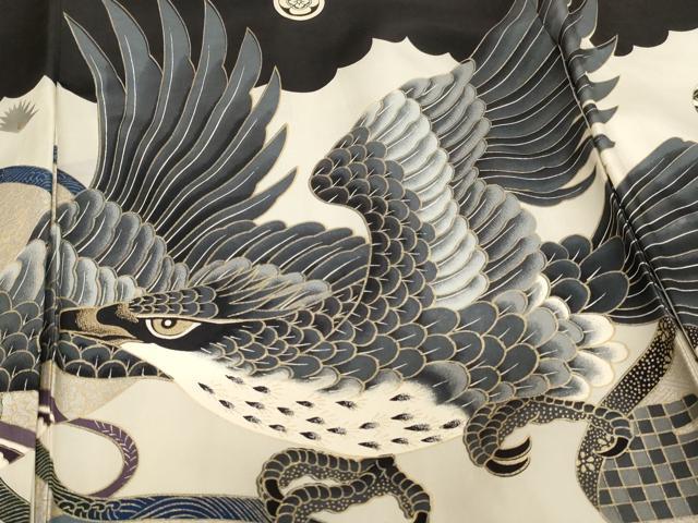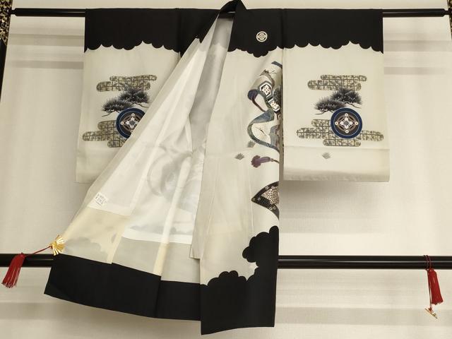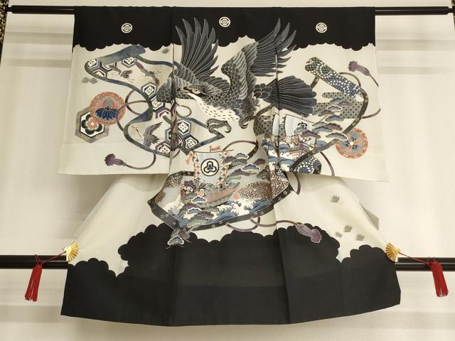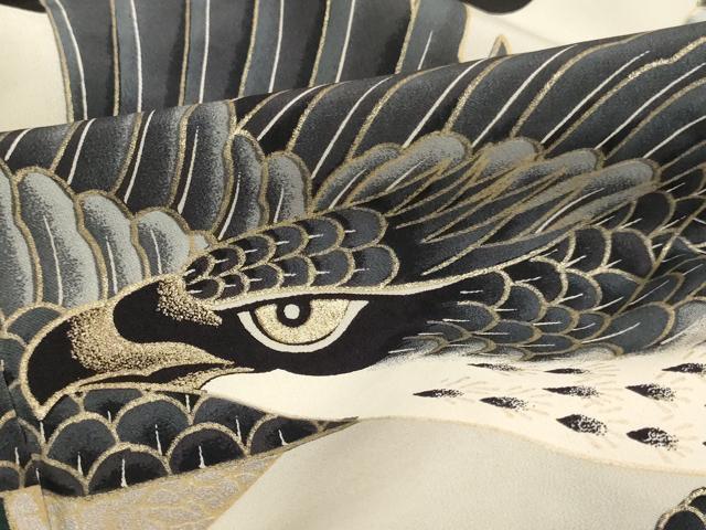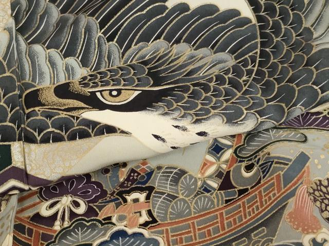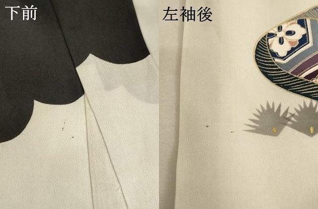 産着【正絹・五つ紋】の状態は接写画像のように下前・左袖後に薄い汚れがございますが