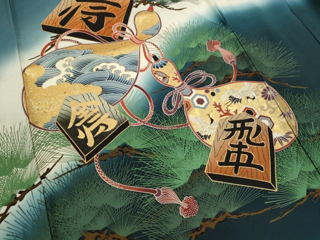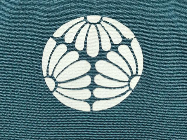 産着【表地:正絹・胴裏:アセテート・五つ紋】の状態は接写画像のように左紐に糸解けがございますが