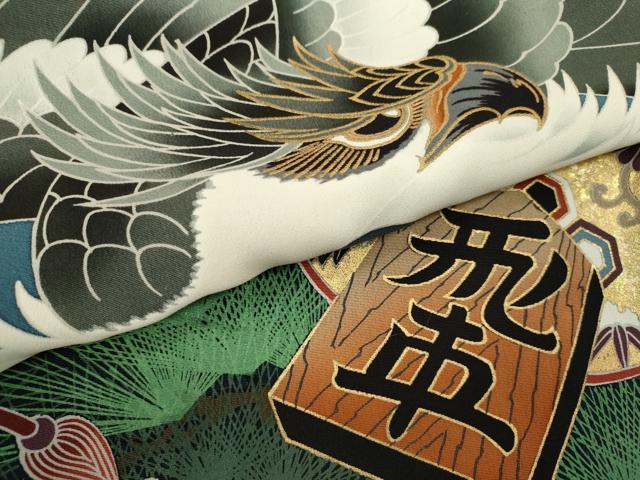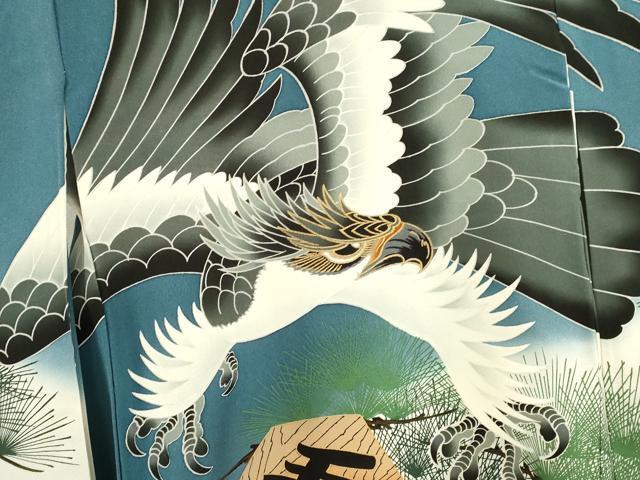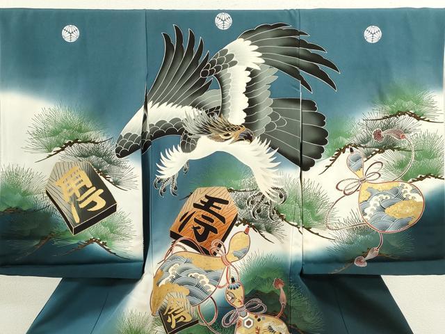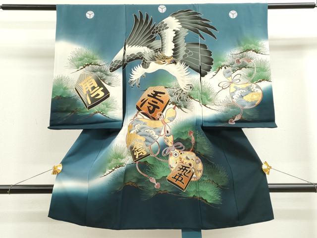 Heiwaya Kimono for Shrine Visits, Boys, Celebration Kimono, Baby Kimono, First Kimono, Noshime Kimono, Hawk, Flying Crane, and Gourd Design, Gradation Dye, Gold and Silver Accents, Excellent Quality, CAAV9411ze