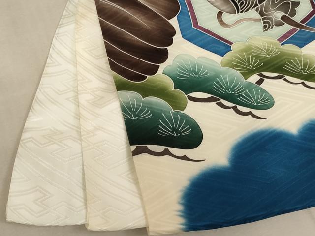 産着【正絹】の状態は接写画像のように右袖前に汚れ、肩山にヤケ、胴裏にシミがございますが
