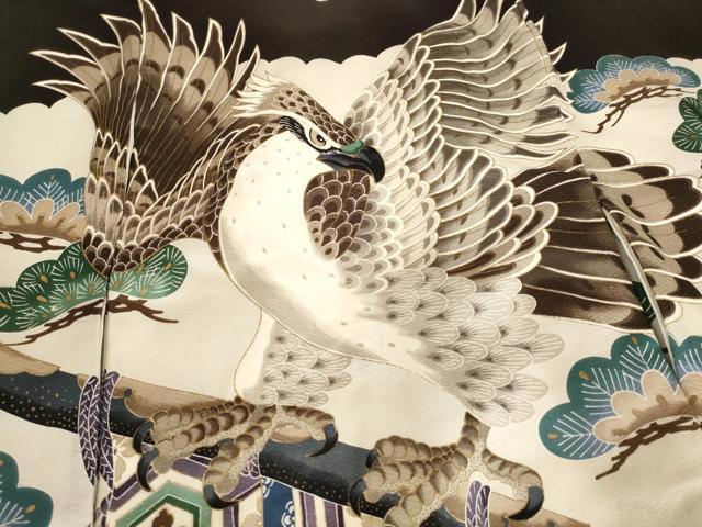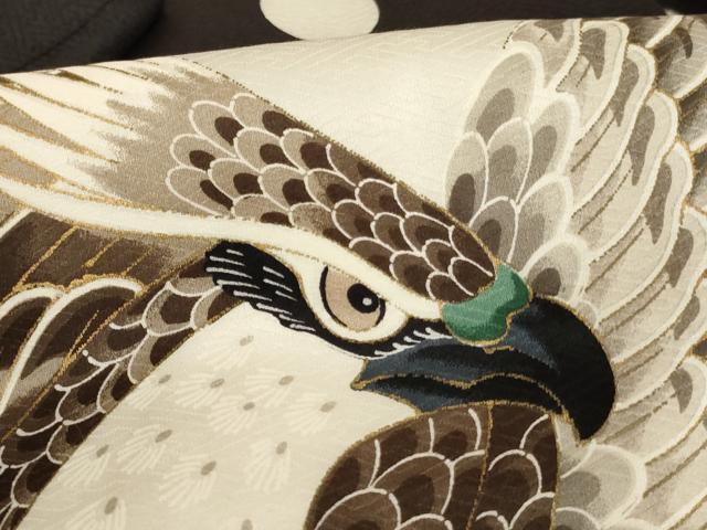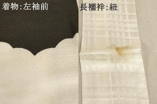 着物【正絹・石持五つ紋】の状態は接写画像のように左袖前に汚れがございますが