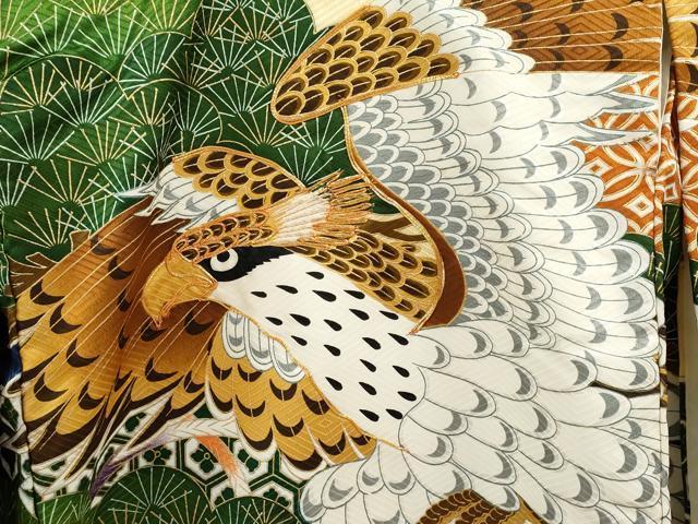 産着【表地:正絹・胴裏:化繊・五つ紋】の状態は接写画像のように右胸の紋に色移り・薄い汚れ、胴裏に経年によるアクがございますが