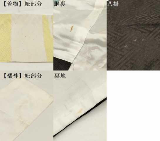 着物:紐部分・胴裏・八掛、襦袢:紐部分・裏地に薄い汚れがございますが