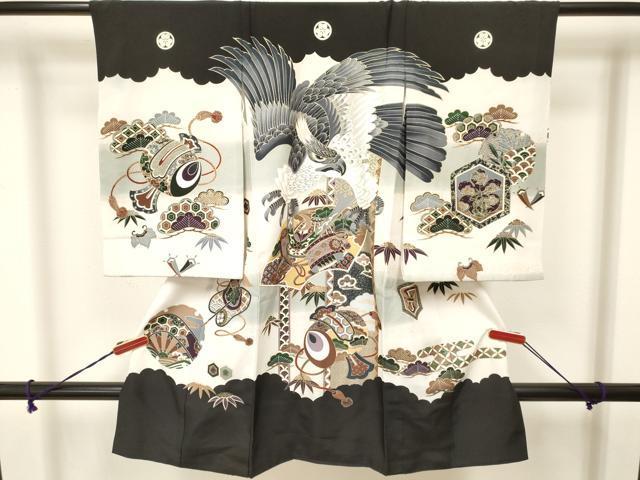 Heiwaya Kimono for Shrine Visits, Boys, Celebration Kimono, Baby Kimono, First Kimono, Noshime Kimono, Hawk and Eagle Designs, Magic Mallet, Pine Design, Gradation Dye, Gold Accents, Excellent Item, DAAW2906ma