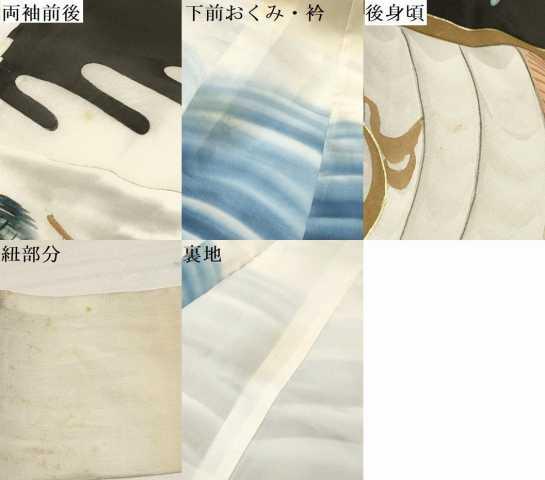 両袖前後・下前おくみ・衿・後身頃・紐部分・裏地に薄い汚れがございますが