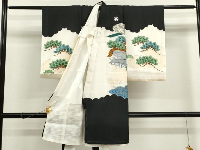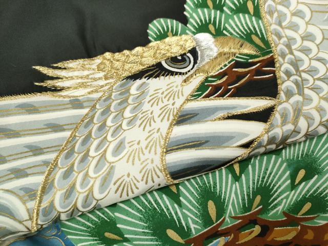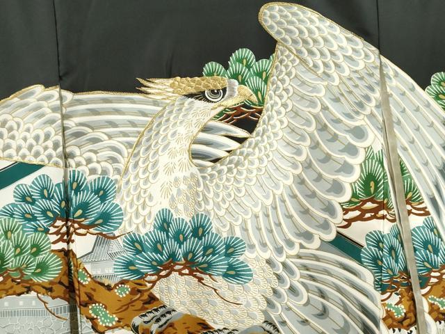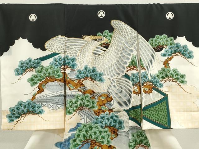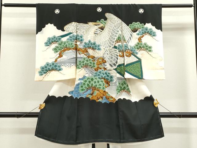 Heiwaya Kimono for Shrine Visits, Boys, Celebration Kimono, Baby Kimono, First Kimono, Noshimen (Seal), Embroidered, Hawk, Landscape, Branches, Pine, Gold, Excellent Quality, CAAT6136ze