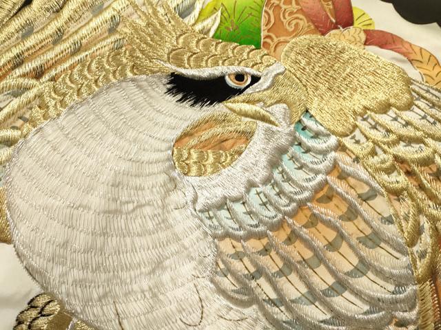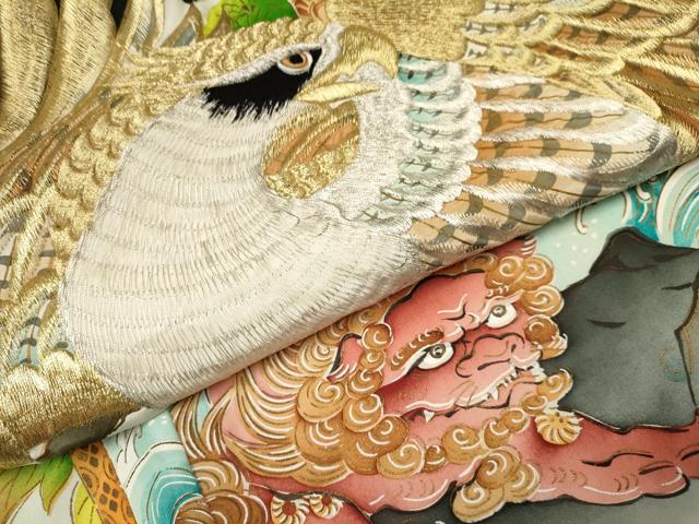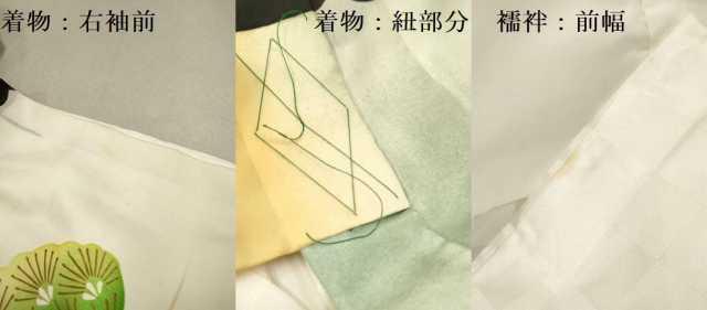 産着【着物:正絹・襦袢:化繊・五つ紋】の状態は接写画像のように