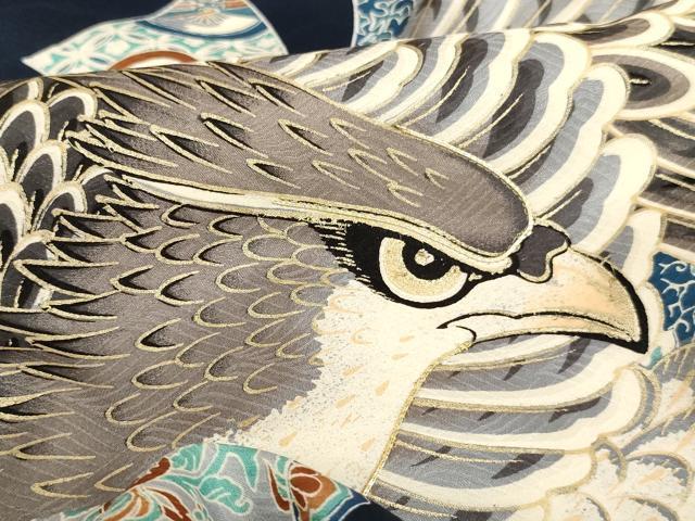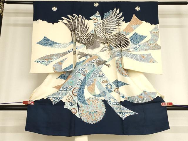 Heiwaya Kimono for Shrine Visits, Boys, Celebration Kimono, Baby Kimono, First Kimono, Noshi (Sealed Noshi), Koma Embroidery, Hawk Design, Gold Decoration, Excellent Quality, AABB5646ja