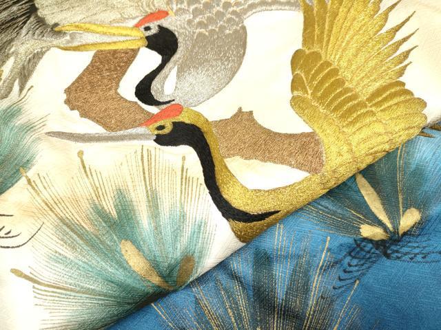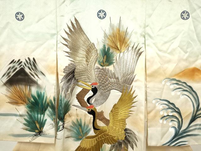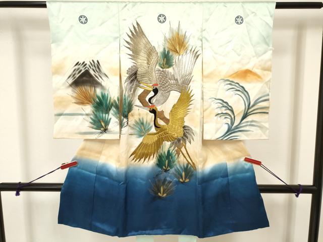 Heiwaya Kimono for Shrine Visits, Boys, Celebration Kimono, Baby Kimono, First Kimono, Noshime (Sealed), Embroidered, Flying Crane and Pine Design, Gradient Dye, Gold Accents, Excellent Quality, DAAW2907ma