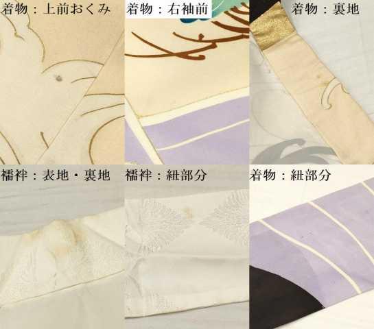 着物上前おくみ・右袖前・裏地・紐部分・襦袢表地・裏地・紐部分に薄い汚れがございますが