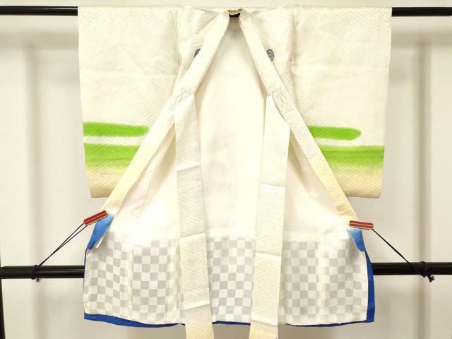 産着【着物:正絹・襦袢:化繊・五つ紋】の状態は接写画像のように
