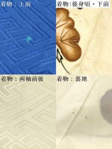 上前・後身頃・下前・両袖前後に薄い汚れ、裏地に点穴がございますが