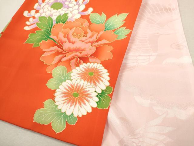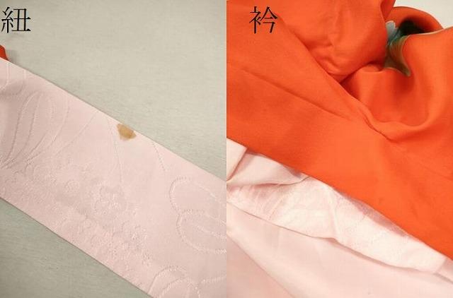 産着【表地:正絹・胴裏:化繊、襦袢:化繊】の状態は接写画像のように衿・襦袢の紐に薄い汚れがございますが