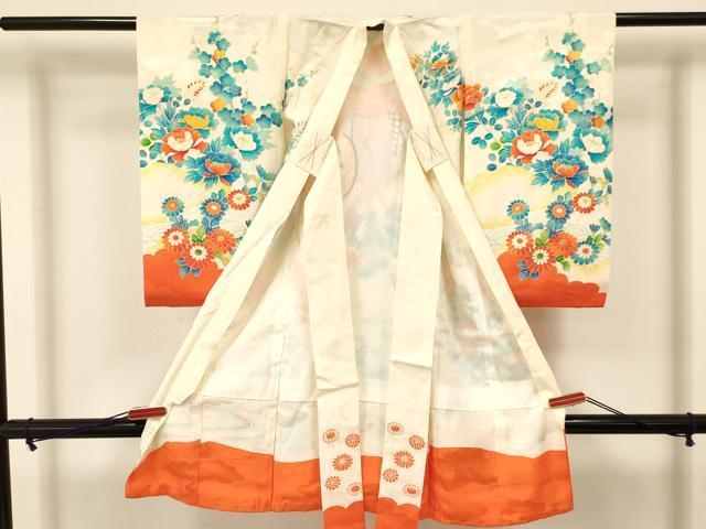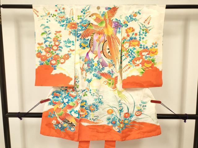 Heiwaya Kimono for Shrine Visits, Girls, Celebration Kimono, Baby Kimono, First Kimono, Noshimen (Seal), Koma Embroidery, Imperial Carriage, Flower and Bird Design, Gold Accents, Excellent Item, DAAS9180ma