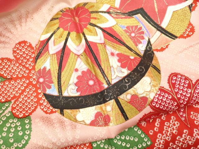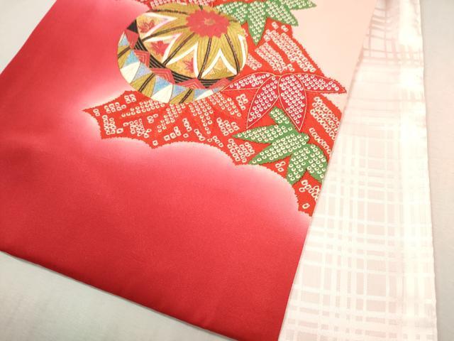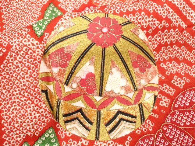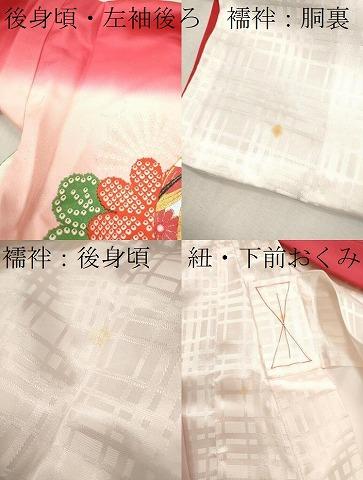 産着【表地:正絹・胴裏:化繊、襦袢:化繊】の状態は接写画像のように後身頃・左袖後ろに柄移り、紐・襦袢の後身頃・胴裏・下前おくみに薄い汚れがございますが